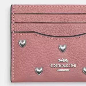 Stunning Pink pebble leather card case with silver heart rivets and silver coach emblem. Limited edition style.