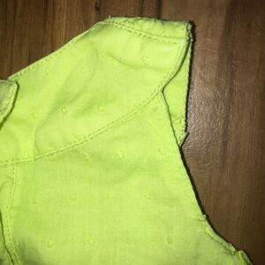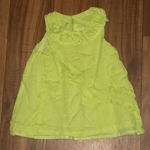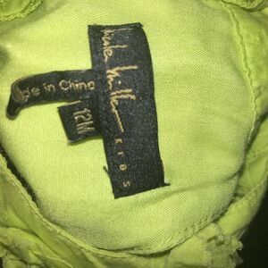 The Nicole Miller Kid's 12 Months Lime Green Sleeveless Dress is a stylish and colorful option for little girls. This solid green dress features a round neckline, button closure, and a short length perfect for summer or spring occasions like parties or casual wear. With a cute and colorful Easter theme, this shift style dress from the reputable Nicole Miller brand is machine washable for easy care and comfort for your little one.