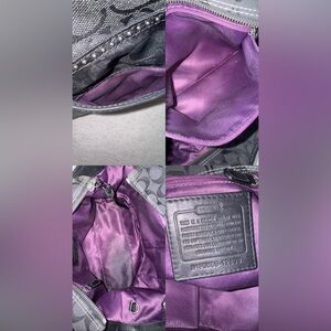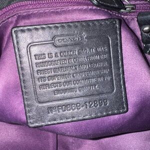 -Good vintage shape with some signs of wear to be noted on description and as shown in photos. Some wear to exterior corners as shows signs of dirt wear. Minor stain toward exterior front top corner and toward bottom side, could possibly be removed with proper cleaning techniques. Interior bottom has a large noticeable stain, could also be removed with proper cleaning techniques as I have not tried to clean this on my own. Missing coach hangtag. Bag has a lot of life left and due to its dark color exterior scheme looks to be in great condition. Please zoom in on photos as necessary. Photos also taken in different lighting for color comparison.