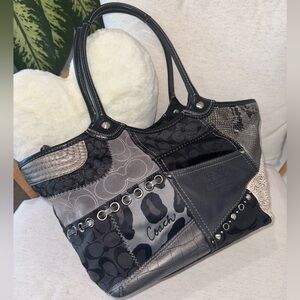 Coach Y2K Vintage Multicolor Black Gray Patchwork Bleecker Tote Purse Bag #12899