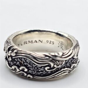 David Yurman Silver sterling waves ring with Black Diamonds