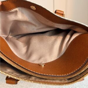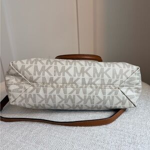 Michael Kors Signature PVC Leather Satchel Bag Brown MK Logo Shoulder Crossbody
