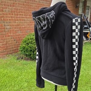 Black 'Race Day' Hoodie with Checkered Sleeves Size XL