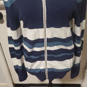 Elegant navy and white zip up sweater. Ideal for layering. Size XS.