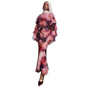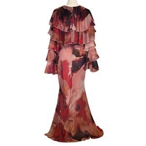 NEW ASOS Design US Size 8 Tiered Ruffle Overlay Bias Maxi Dress Abstract Print