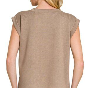 The scuba round neck cap sleeve top is a modern and stylish wardrobe essential that combines comfort and fashion. Crafted from scuba fabric, this top offers a sleek and structured silhouette with a touch of stretch for ease of movement. The round neck and cap sleeves give a classic and versatile look that can be dressed up or down for any occasion. The scuba material provides a polished finish, making this top suitable for both casual outings and more formal events. With its flattering fit and contemporary design, the scuba round neck cap sleeve top is a versatile piece that effortlessly elevates your outfit.