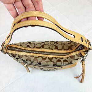 Coach Y2K Signature Logo Monogram Canvas Leather Tan Shoulder Bag Tassel #9363