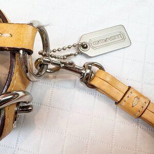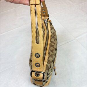 Coach Y2K Signature Logo Monogram Coated Canvas Leather Tan Shoulder Bag with Tassel Charm #9363