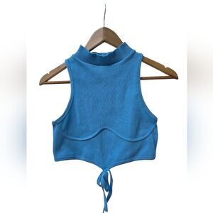 Upgrade your wardrobe with this stylish blue ribbed crop top. Perfect for casual outings, it combines comfort with a trendy look.