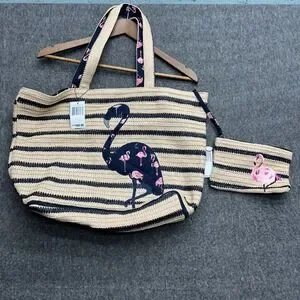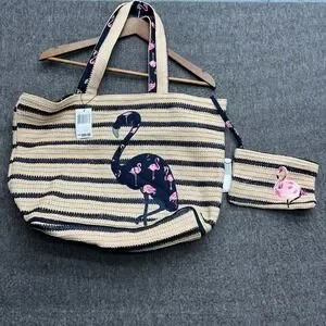 Vera Bradley Seashore Tote Beach Fiesta Wristlet Clutch Bag Pink Flamingo