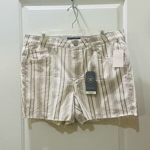 NWT…Stylish striped shorts in white and brown. Sport cool nautical style on a sunny day in striped stretch-cotton shorts fashioned with 'Ab'solution shaping panels that comfortably mold and hold.