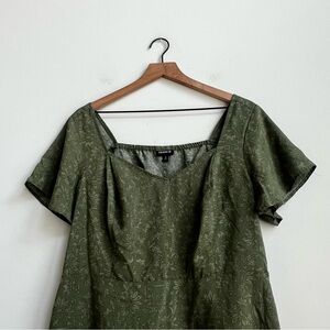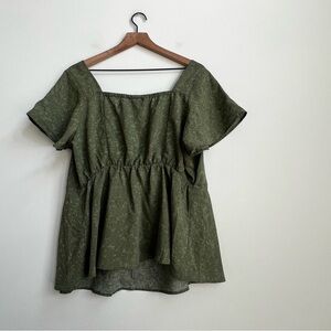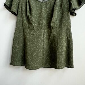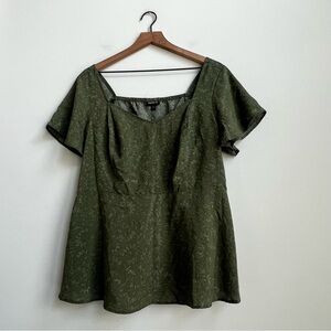 TORRID Peplum Challis Floral Olive Sweetheart Top Forest Fairy Whimsical 12 L