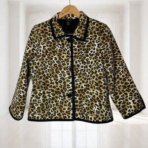 Monterey Bay Leopard Print Cotton Blazer Petite Medium Lined Animal Print Jacket