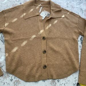 NWT Free People Ella Sweater Cardigan Shirt in Iced Coffee Size M