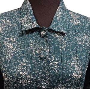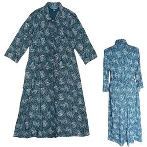 April Cornell Collared Floral Midi Dress, Size M. COLOR: Teal. 100% rayon. Machine washable.
