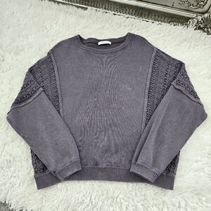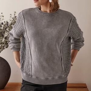 Pure Jill Elements Bohemian Stonewashed Textured Sweater. light grey smoke. Size