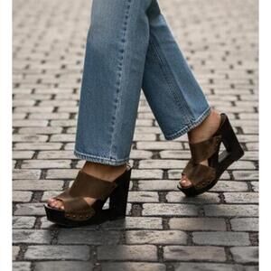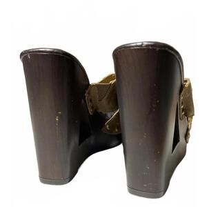 Fergie Brown leather Wedge Sandals Stud Accents 8.5