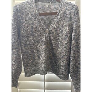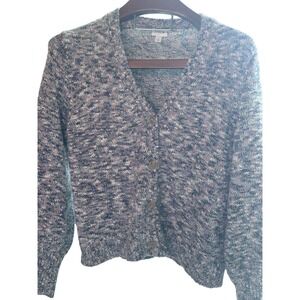 J.Crew Space Dye Cardigan Sweater Blue Purple Marled Knit V-Neck Womens Large