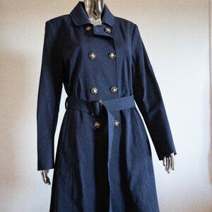 Navy Trench Coat With Grey Tortoiseshell Buttons Belted