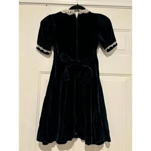 EUC Pleasant Company Dress Like Your Doll Molly Velvet Green Dress Size 8. Gorgeous green velvet dress decorated with lace collar and hem of sleeves. It ties in the back. It will hit about the knee. The pit to pit is 13 inches.