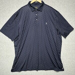 Polo Ralph Lauren Performance Mens 3LT Navy Blue Paisley Stretch Golf Polo Shirt