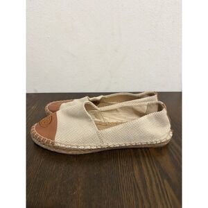 Tory Burch color block flats Luggage Canvas Napa Leather espadrilles Size 5