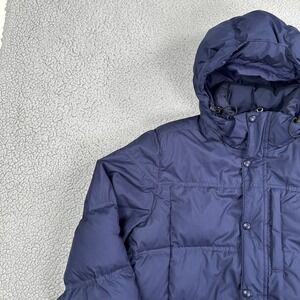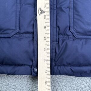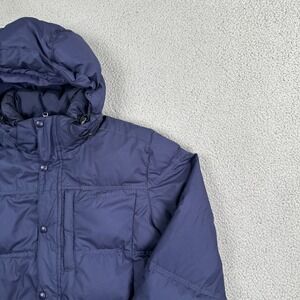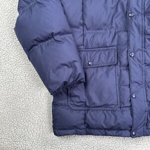 For sale is this LL Bean Puffer Downtek Jacket Men Medium Reg Blue Removable Hood Pertex 295958. It is in good used condition. Please see photos for exact measurements and wear.