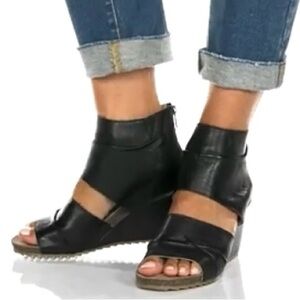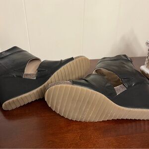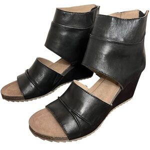 Diba True "Next N Line" Black Leather Wedge Sandals 10 NWOT