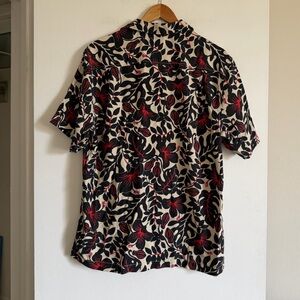 Tommy Bahama Red/Black Floral Silk Blend Hawaiian Printed Button Down Top size M