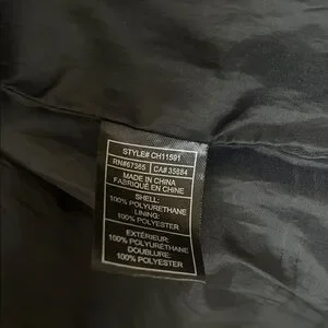 Fabric: 100% Polyester (lining) 100% Polyurethane (shell)