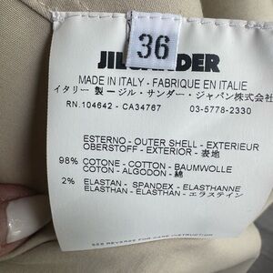 This knee-length cream pencil skirt by Jil Sander is the epitome of elegance, perfect for cocktail occasions. Its sleek design offers a sophisticated silhouette, making it a versatile addition to your wardrobe.