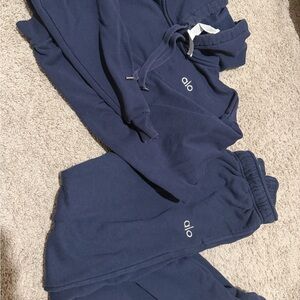 ALO Accolade Navy Blue Sweatpants and Hoodie Set