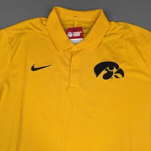 Iowa Hawkeyes Polo Shirt Mens Large Yellow NCAA Football Nike Dri-FIT Golf