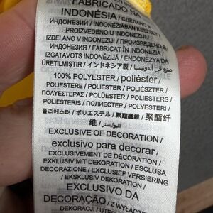 Color: Bright yellow body, collar, and sleeves with contrasting black embroidered chest graphics.