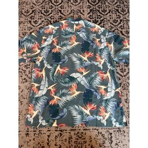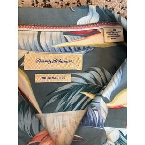 TOMMY BAHAMA Blue Birds of Paradise Button Down Shirt Short Sleeve Size L Silk