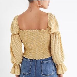 Urban Outfitters Yellow Ruffled Ruche Crop Top Smocked Long Sleeve Checkered S