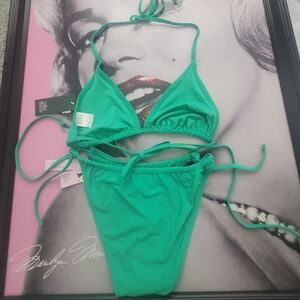 Wild Fable-Vibrant Green- Side Tie- High Leg- Cheeky Bikini Bottom & Triangle Top.