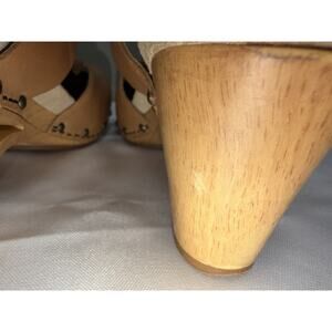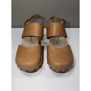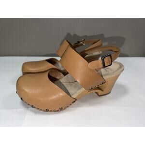 Dansko Thea Beige Leather Slingback Wooden Heels Clogs Sandals US 5.5 / EU 36