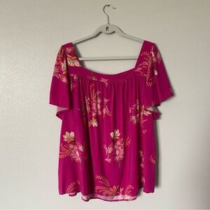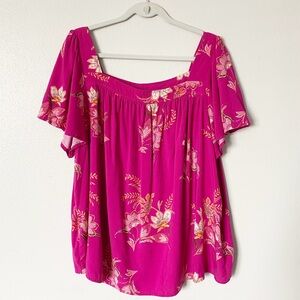 Torrid Challis Flutter Sleeve Top Size 3 (3X/22-24) Mindful Paisley Fuschia Red