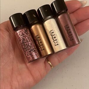 MAC Cosmetics Mini Pigments featuring Vanilla, Rose Gold, Maroon and Mini Glitter in Pink. Full of color, a little goes a long way! Perfect for bold eye looks.