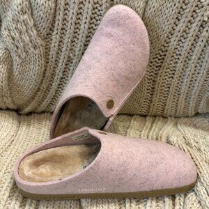 Birkenstock Zermatt Shearling Slippers Pink Wool Felt Size 39