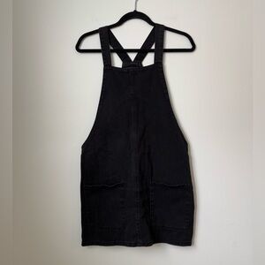 Black denim dress with a side zipper. It is really flattering and cute! Size large.