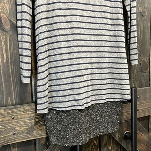 New with tags. Anthro brand Bailey44 layered tunic dress with grey & black stripes. Size small. Soft striped knit body with contrasting textured wool-blend hem for a modern lagenlook feel. Easy to style over leggings or wear alone as a mini dress. Minimalist. Neutral. Long sleeves. Layering staple.