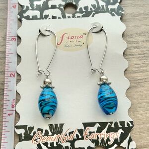 NWT Fiona Blue and Black Zebra Print Glass Bead Dangle Earrings