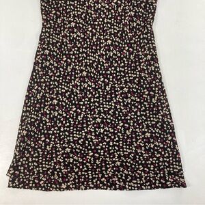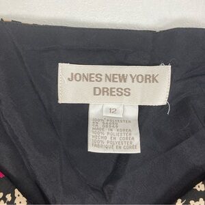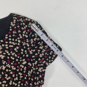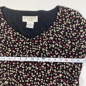Jones New York Midi Dress Size 12 Women Black Floral Short Sleeve V Neck Pull On
