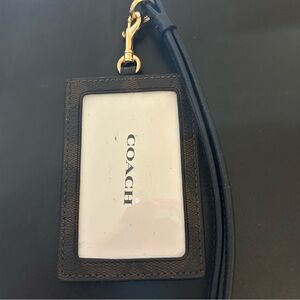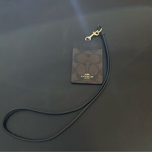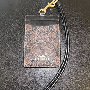 Elegant Coach card holder with signature pattern. Comes with a sleek black lanyard and gold clasp. New and never used.