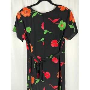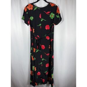 Connie Choi Vintage Y2K Black Floral Maxi Dress Short Sleeve Casual Summer Small