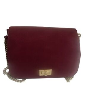 FOREVER 21 Burgundy Gold Chain Strap Crossbody Bag Soft Suede Flip Closure Bag
