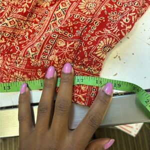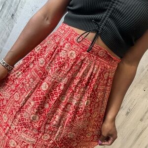 Multicolored maxi skirt by “jones New York” in a size large. Made from a rayon fabric with fitted elastic waistband.