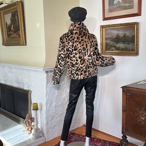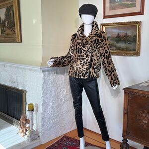 H&M Leopard Print Fluffy Faux Fur Motorcycle Style Jacket